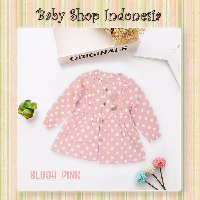 Atasan Anak Lengan Panjang Mini Dress Anak Katun Baju Anak Perempuan Lengan Panjang Polkadot Pastel