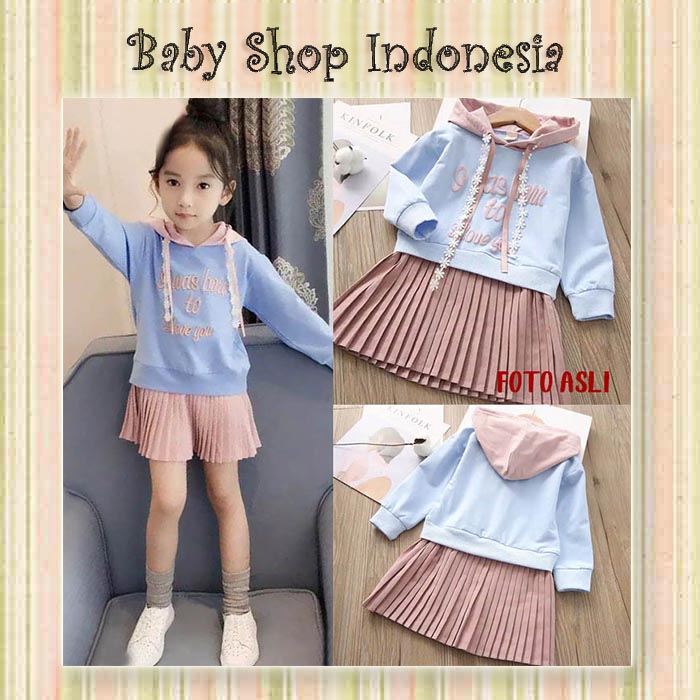 Baju Anak Perempuan Model Dress Korea Anak Hoodie Blue Pink
