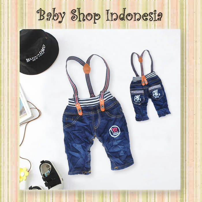 Bahan denim halus,pinggang full karet,sudah termasuk suspender