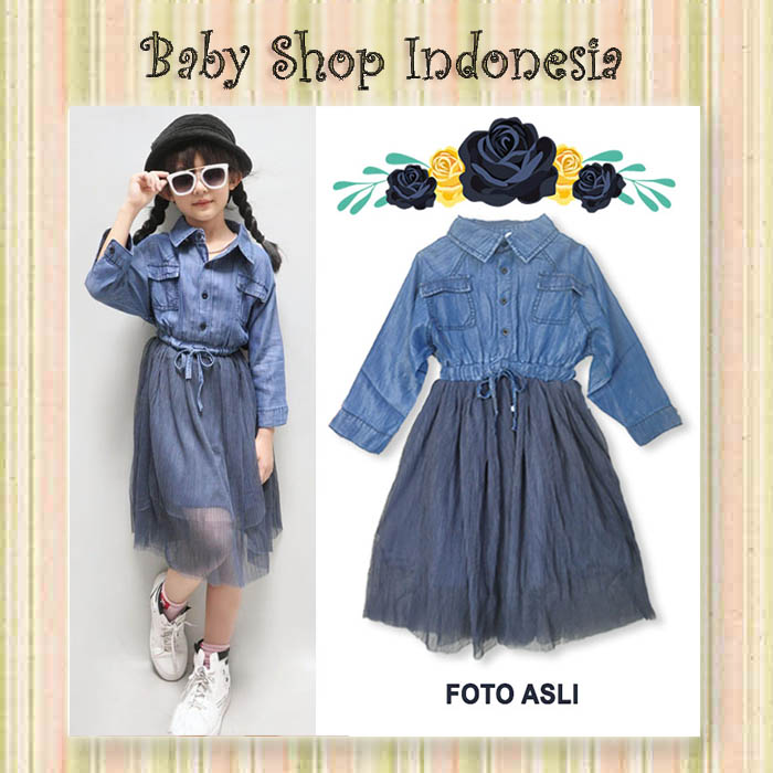 Dress Anak Denim Baju Anak Lengan Panjang Kemeja Dress Anak Import Denim Tutu