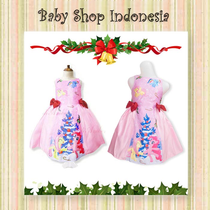 Dress Anak Import Murah Dress Little Pony Dress Natal Pony Pink