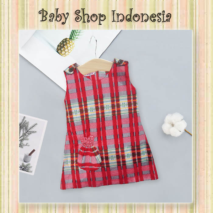 PD612 Dress Anak Katun Rok Katun Anak Tartan Red  large