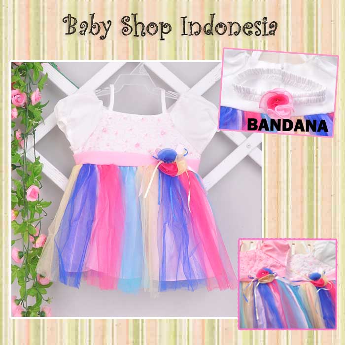 Dress Pesta Tutu Rainbow dan Bandana