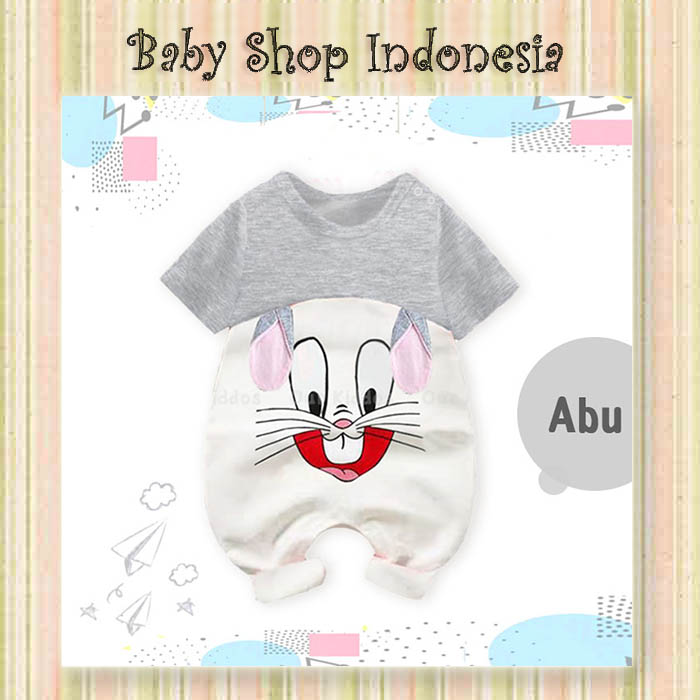Jumpsuit Bayi Import Jumper Bayi Animal Lucu Mikki Grey