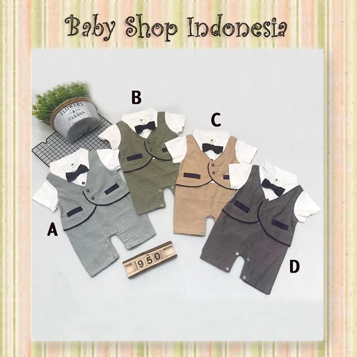 Jumpsuit Pesta Bayi Romper Tuksedo Bayi Dasi Panjang Rompi Abu