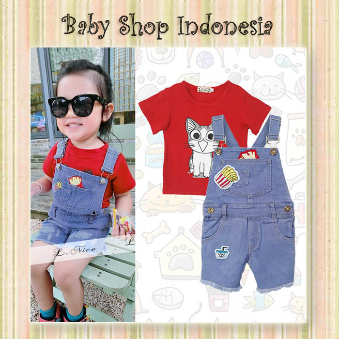 Overall Celana Jeans Anak Import Light Blue French Fries