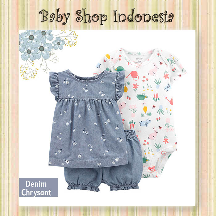 PU600 Setelan Baju Bayi Import 3in1 Jumpsuit Bayi Tshirt Anak Branded Denim Chrysant  large