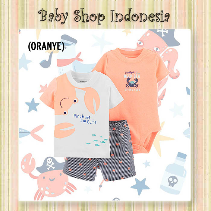LU552 Setelan Baju Bayi Import 3in1 Jumpsuit Bayi Tshirt Anak Branded Orange Crab  large