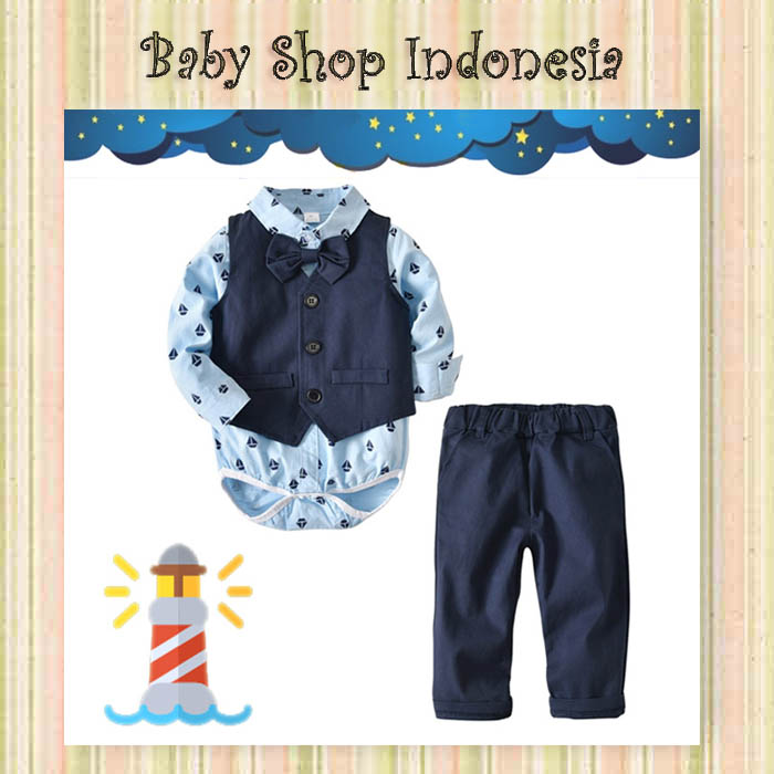 Bahan katun halus premium,dasi menempel,celana pinggang karet,rompi bisa dilepas.