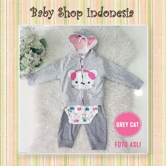 PU457 Setelan Jumpsuit Jaket Bayi Carters Grey Cat  large
