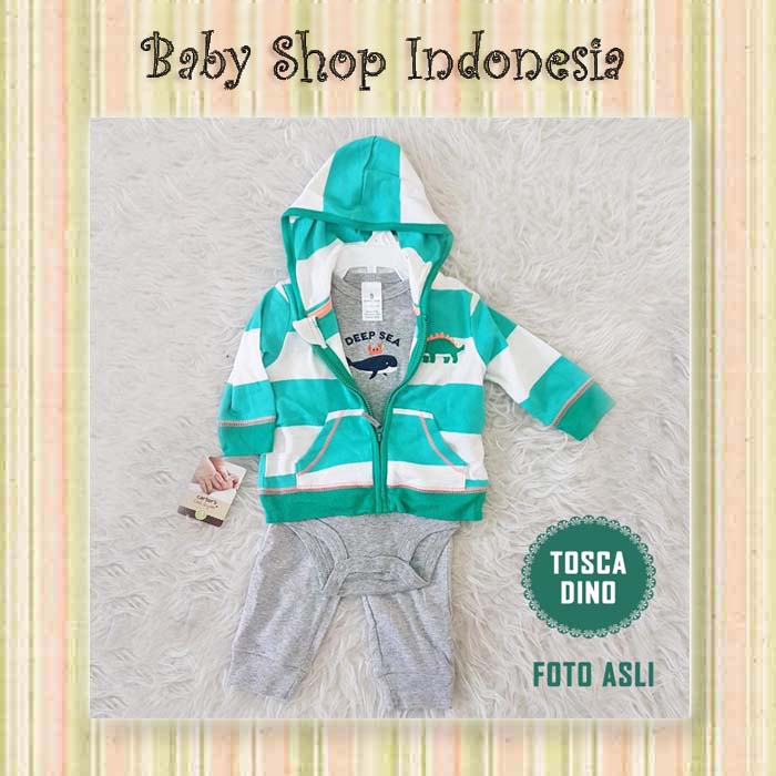 Hang tag carters, bahan kaos halus adem,set terdiri dari jumpsuit-jaket-celana.