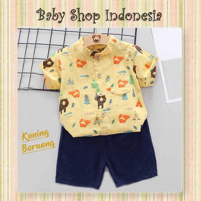 LU612 Setelan Kemeja Anak Cowok Setelan Baju Anak Import Zoo Fox and Bear Kuning  large