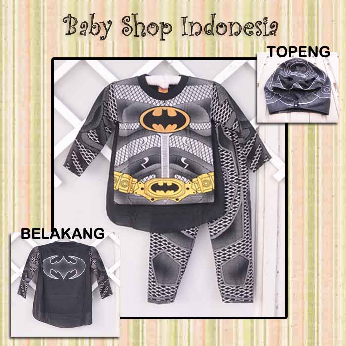 Setelan Kostum Batman dengan desain unik superhero Batman, dibelakang ada sayap dan dapat Topeng Kain