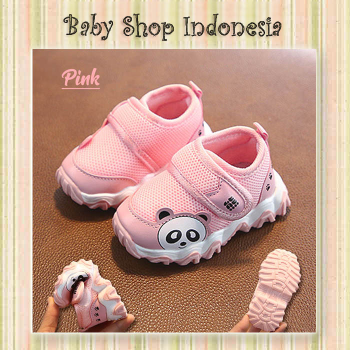 Bahan kain polyester, model jaring adem dipakai. Sol karet lentur, ringan, dan tidak licin.)
