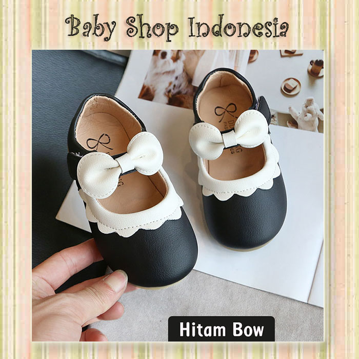Sepatu Anak Perempuan Hitam Putih Sepatu Anak Import Hitam Putih Bow