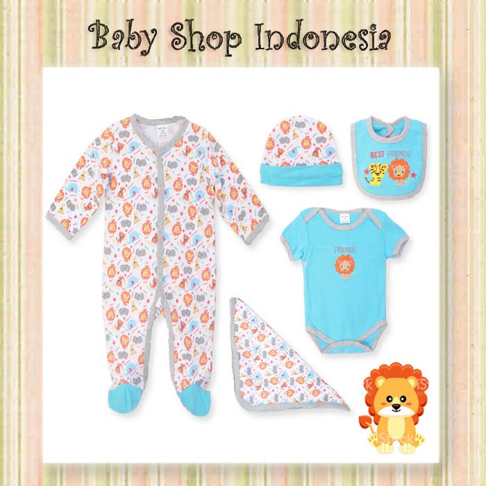 Set Baju Bayi Lahir Jumpsuit Bayi Newborn Blue Lion