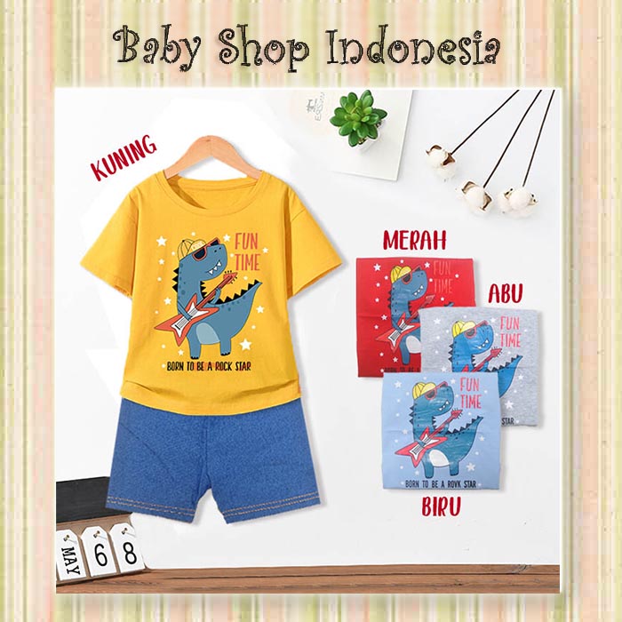 Setelan Kaos Anak Dinosaurus Rock Dino