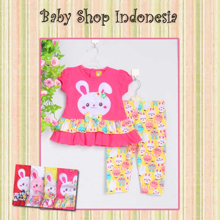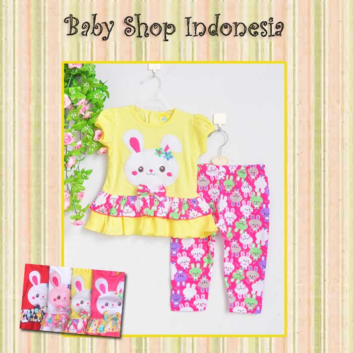 Setelan motif bunny yang lucu serta warna yang cantik cocok untuk melengkapi fashion anak anda. All size 9-18blnan (24x35 / 16x43cm)