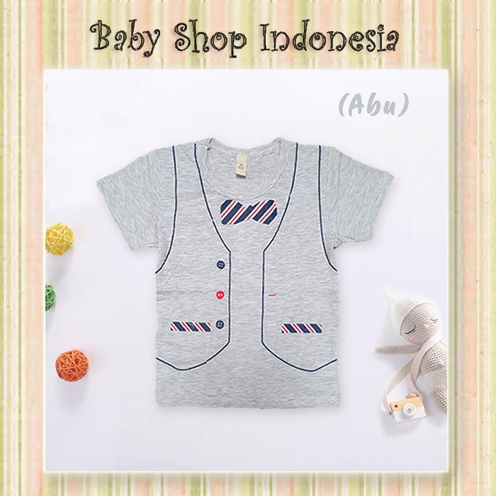 LK166 Tshirt Bayi Cowok Kaos Anak Murah Tshirt Anak Adem Gambar Rompi Dasi Abu  large