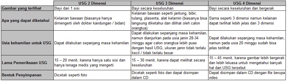 USG atau Ultrasonografi seringkali digunakan untuk memvisualisasikan janin dalam kandungan. Dan dalam perkembangannya, terdapat beberapa macam jenis USG. Seringkali ibu hamil dan pasangannya bingung dalam menentukan jenis USG yang akan mereka pilih. Selain tarifnya yang berbeda, manfaatnya seringkali juga kurang diketahui. Berikut adalah beberapa penjelasan tentang macam-macam jenis USG :