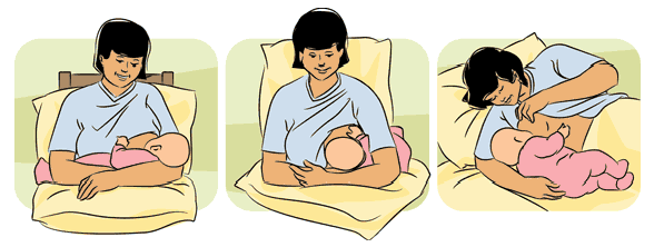Pada minggu-minggu awal setelah kelahiran, ada baiknya mengenalkan kepada bayi lebih dari satu posisi mengisap puting susu ibu. Pada artikel sebelumnya, kita telah mengenal posisi pelukan-ayunan. Posisi lain yang dapat dicoba antara lain posisi berbaring bersebelahan dan posisi pelukan-kempit. Posisi ini sangat berguna pada beberapa hari pertama masa pemulihan setelah proses kelahiran melalui operasi sesar.