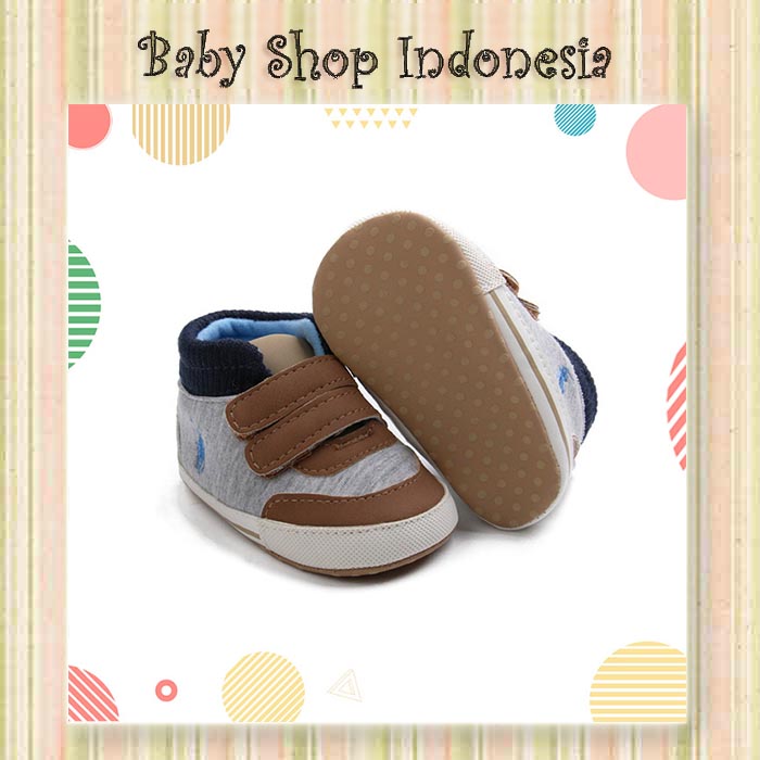 Sepatu bayi berbahan utama kain dan busa tipis sehingga ringan dan nyaman dipakai. Alasnya ada totol karet anti selip sehingga tidak licin. Cocok untuk bayi yg belum bisa berjalan hingga sedang belajar jalan.